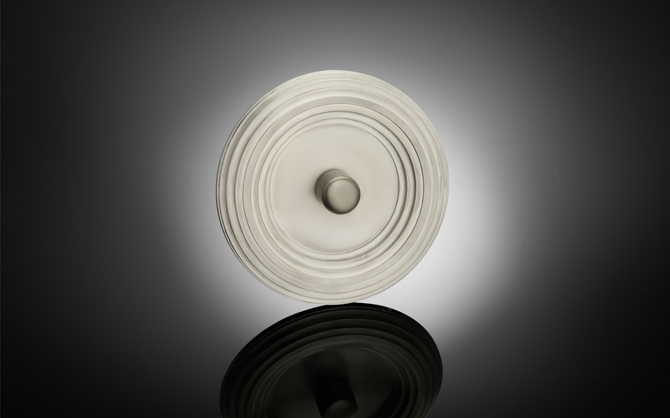 The Circular Ziggurat is inspired by the postmodern designs of Michele De Lucchi. I designed these for my own home, reflecting his playful approach to geometry and form while celebrating the warmth of naturally aged aluminium. Over time, the surface develops a soft patina, turning a simple fixture into a quiet, sculptural feature.