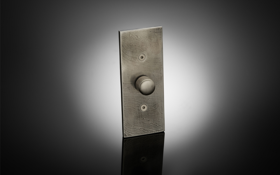 The Damascus Steel switch plate is a minimalist switch plate defined by its sharp-cornered rectangular form. Its simplicity allows the material to take centre stage— Damascus steel, with its distinctive layered pattern. Each plate reveals subtle variations in tone, texture, and pattern, highlighting the craftsmanship of the steelworkers who forged the metal for us in Sialkot, Pakistan. The narrow form here is known as an architrave switch, but wider plates are also possible.